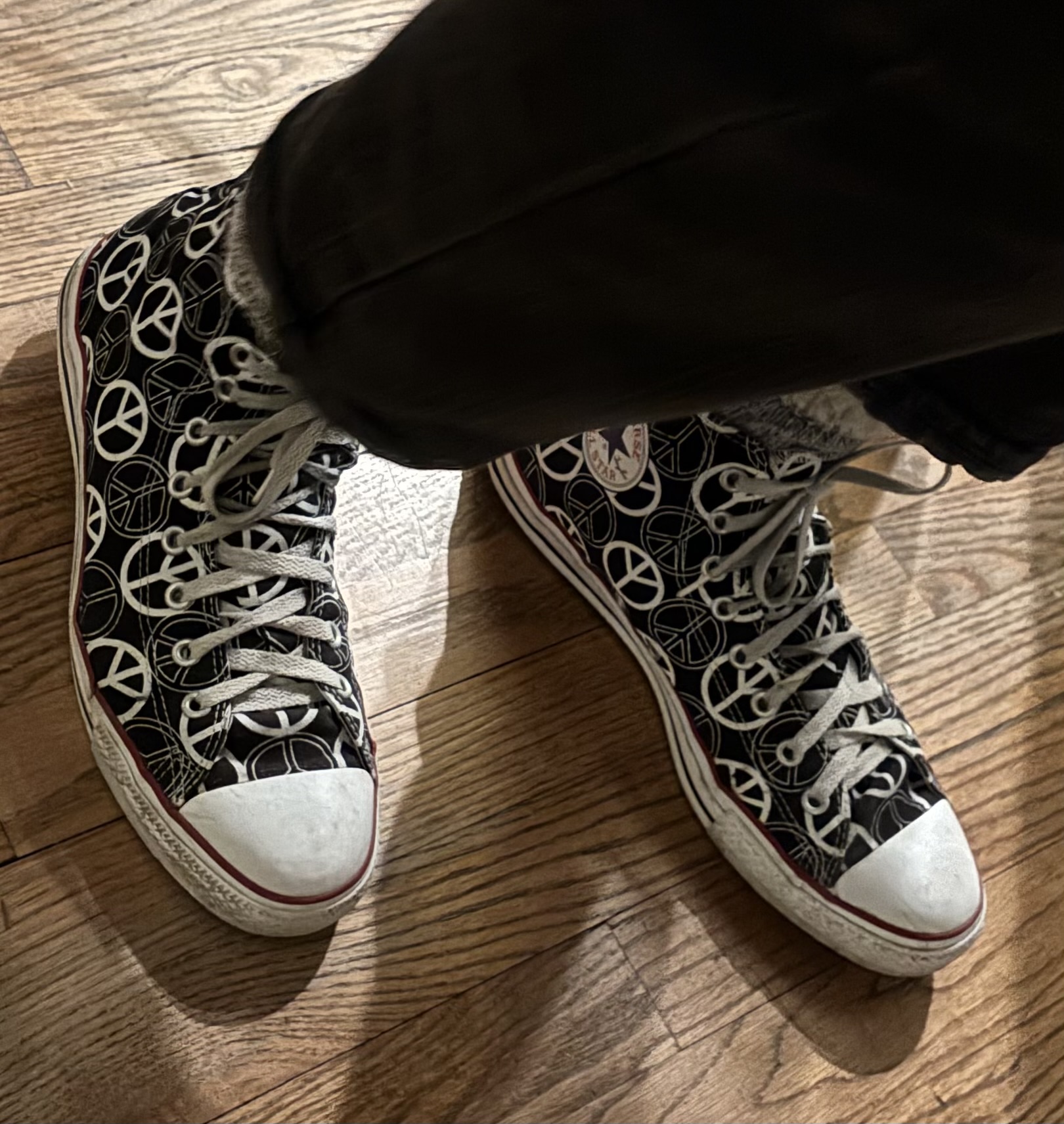 I found myself staring at 20’s shoes. Converse Peace Signs. They were Kerri’s dad’s shoes and she gave them to 20 after her dad passed. Walking in peace. What would it take for us to embrace our diversity and flip our racism on its head? Diversity is, after all, in every situation in nature, a strength. Prosperity in all its forms is dependent upon rich diversity. Mono culture is death.