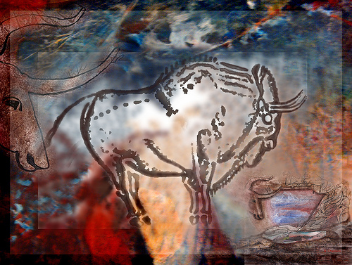 Leigh is one of the world’s leading authorities on Rock Art (cave painting, petroglyphs, etc.) and his townhouse is a feast for someone like me. It is a treasure house of books and images from Rock Art sites – places where centuries ago humans scratched an image into rock or painted a picture on the wall of a cave. We don’t know why they made these images, we can only speculate about the figures and what they represent. I’m willing to bet that these people weren’t working for some effect or result. The images they created were less important than the relationships the image encouraged; the “doing” was in support of the “being” and happened in that space between disappearing and reappearing.