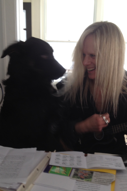 Our house is filled with musical instruments. Dog-Dog hangs out under the piano when Kerri plays. He wraps himself around her stool and chews a bone when she practices her cello. He sleeps through my clumsy first attempts at new guitar chords (or, perhaps my playing puts him to sleep). His broadmindedness snaps shut at the ukulele. He will go to great lengths to stop the strumming. If we contain him in the kitchen he howls.