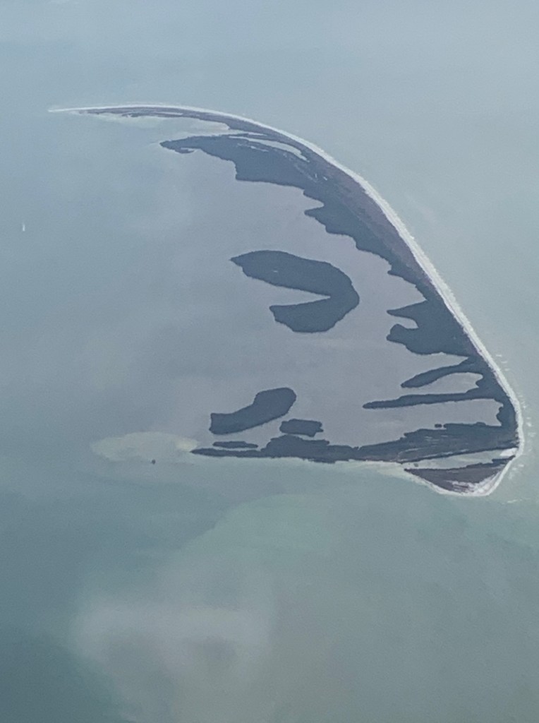 “It looks like a horses head,” she said, snapping the photo from her window seat on the plane. We were on approach to land, coming in over the bay.