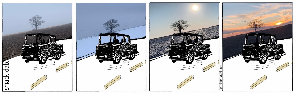 In the same way, on our way home, we stop and visit a tree in a farmer’s field. It stands in isolation, alluring on the horizon. It is both the same and never the same. A guardian in the fog. The geese land in the surrounding field and gather close to its protective arms. It is an ancient beacon in the cold icy snow. It’s silhouette at sunset has moved me to tears. We have a relationship with it. It’s like an old friend.
