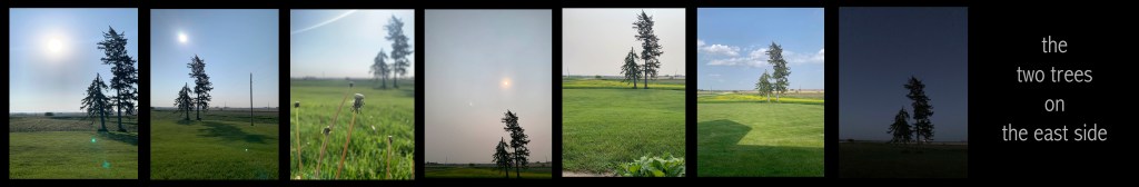 Across the yard from the farmhouse porch stand two guardian trees. “Look!” she exclaimed, running to show me the latest photo. “They’re so amazing,” she said, showing me the growing series. “They’re entirely different in the morning than they are in this light…” she said, turning her focus and camera back to the trees. “Geez! Look at them now!”