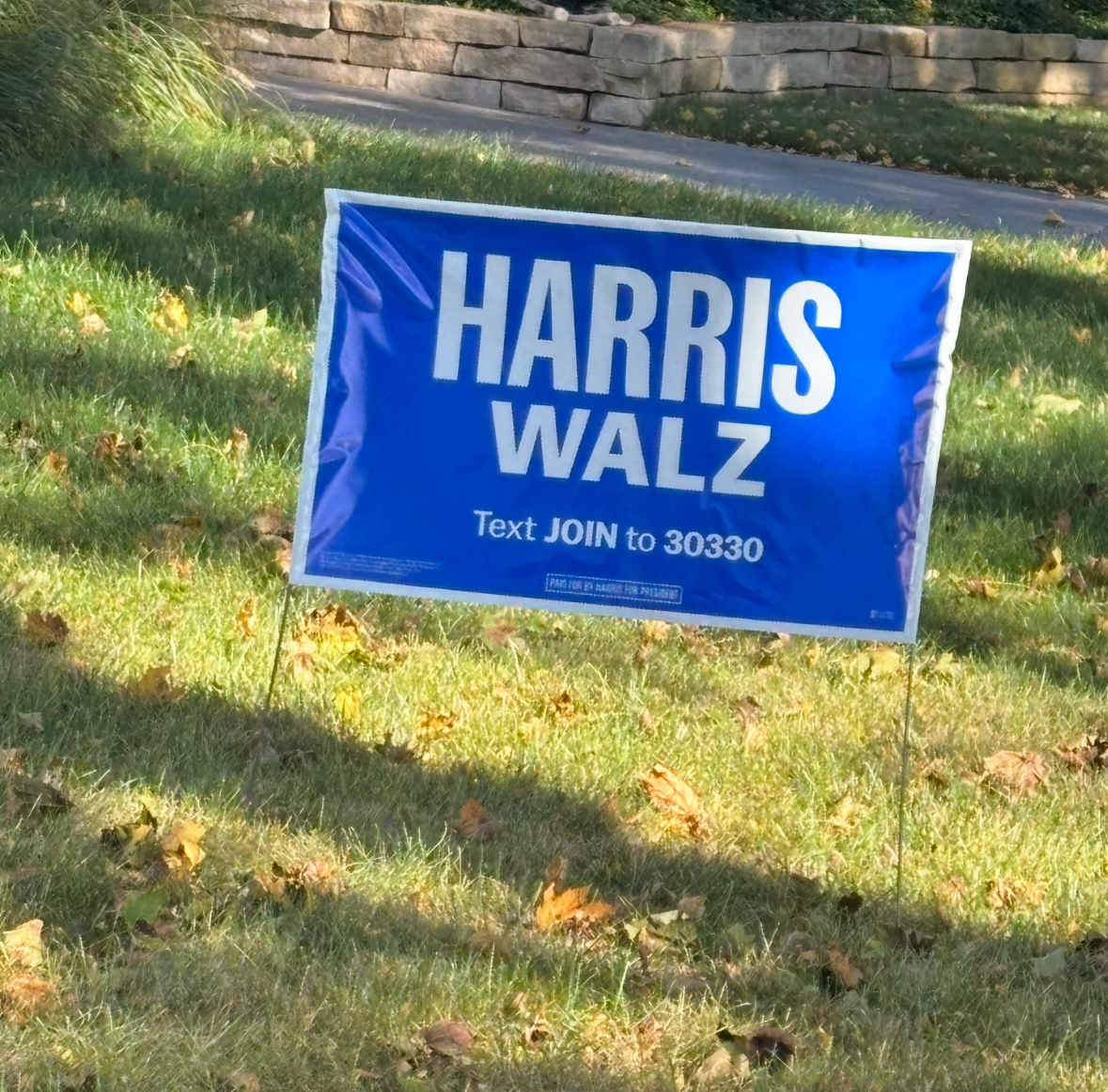 Small pattern: over time, more and more Harris/Walz signs showed up in yards, moving from inside the house to the outside where they belong.