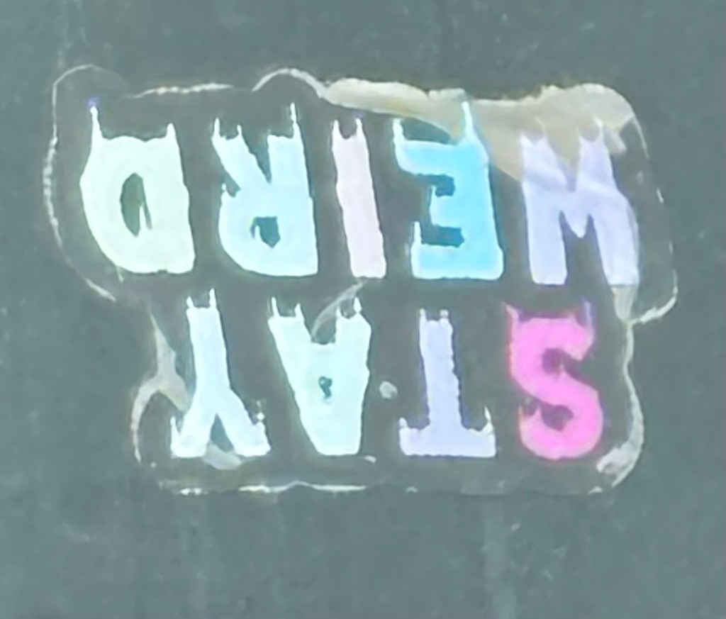 We fly the flag upside down as a signal of distress. I imagined the bumper sticker was placed upside down to reinforce the point. Stay Weird. The current purveyors of authoritarian insanity intend to hammer us into compliance. To silence the voices of opposition (goodness). They attack judges while freeing criminals; they would have us believe that the rule of law is criminal so that the criminal might lawlessly rule. They would have us behave, stay quiet. Look down or bury our heads in the sand. Goosestep.