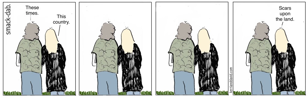 The current administration is in a panic to white-wash our history. White males who consider themselves divinely appointed like to edit their ugly history so they appear, well, divinely appointed. Just. Righteous. Their Big Bloated Bill is not the first time in our history that the richest of the rich would take the spoon from the mouth of the poor so that they might have more, more, more – and gloat about it. And lie about it.