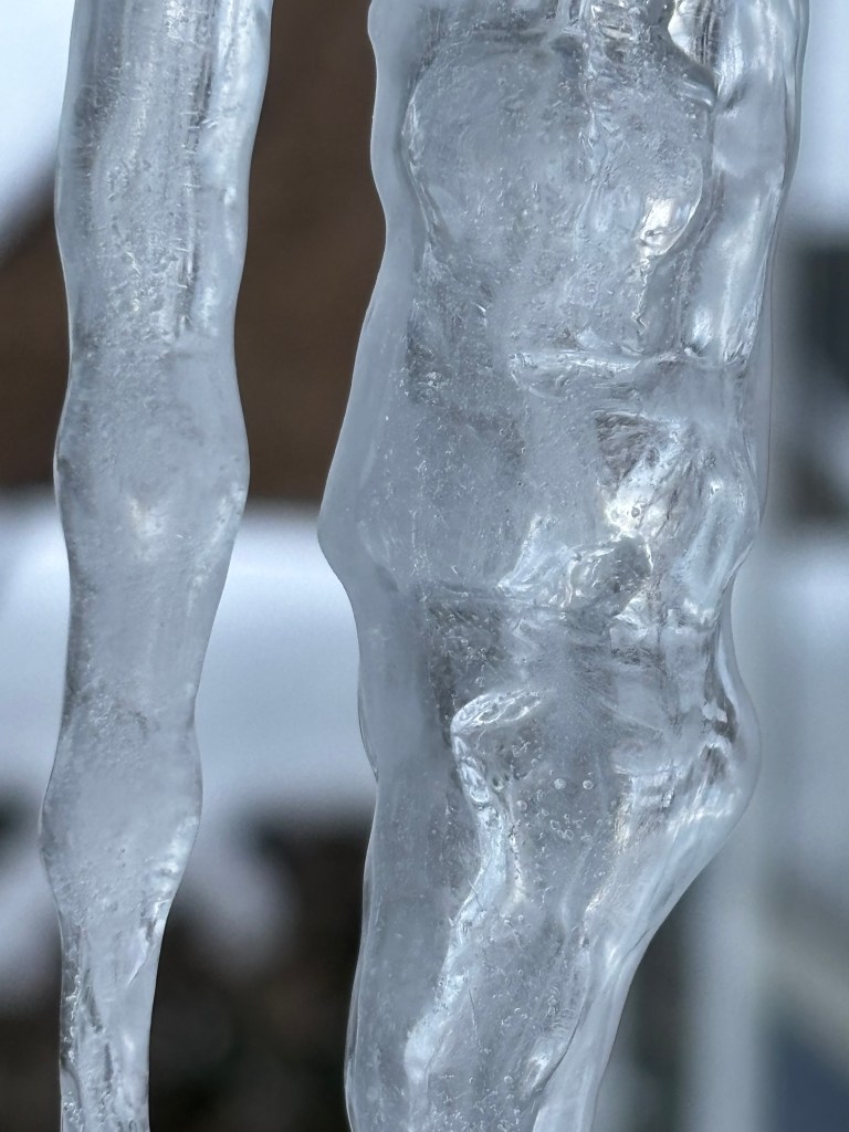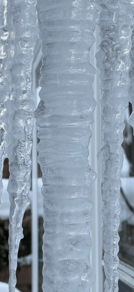 For my one simple thing this winter, in these turbulent and troublesome times, I choose icicles. Or, perhaps it is more accurate to say that icicles have chosen me. We are spending an inordinate amount of time together.