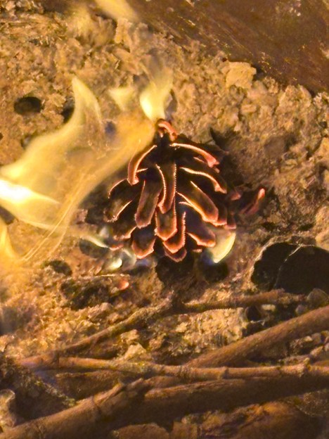 When we were married, Joan gave us a box of pine cones. We’ve followed her suggestion and each year commit a cone to fire to release the seeds. New life. The symbology also includes resilience because fire is often required to free the seeds. Fire transforms.