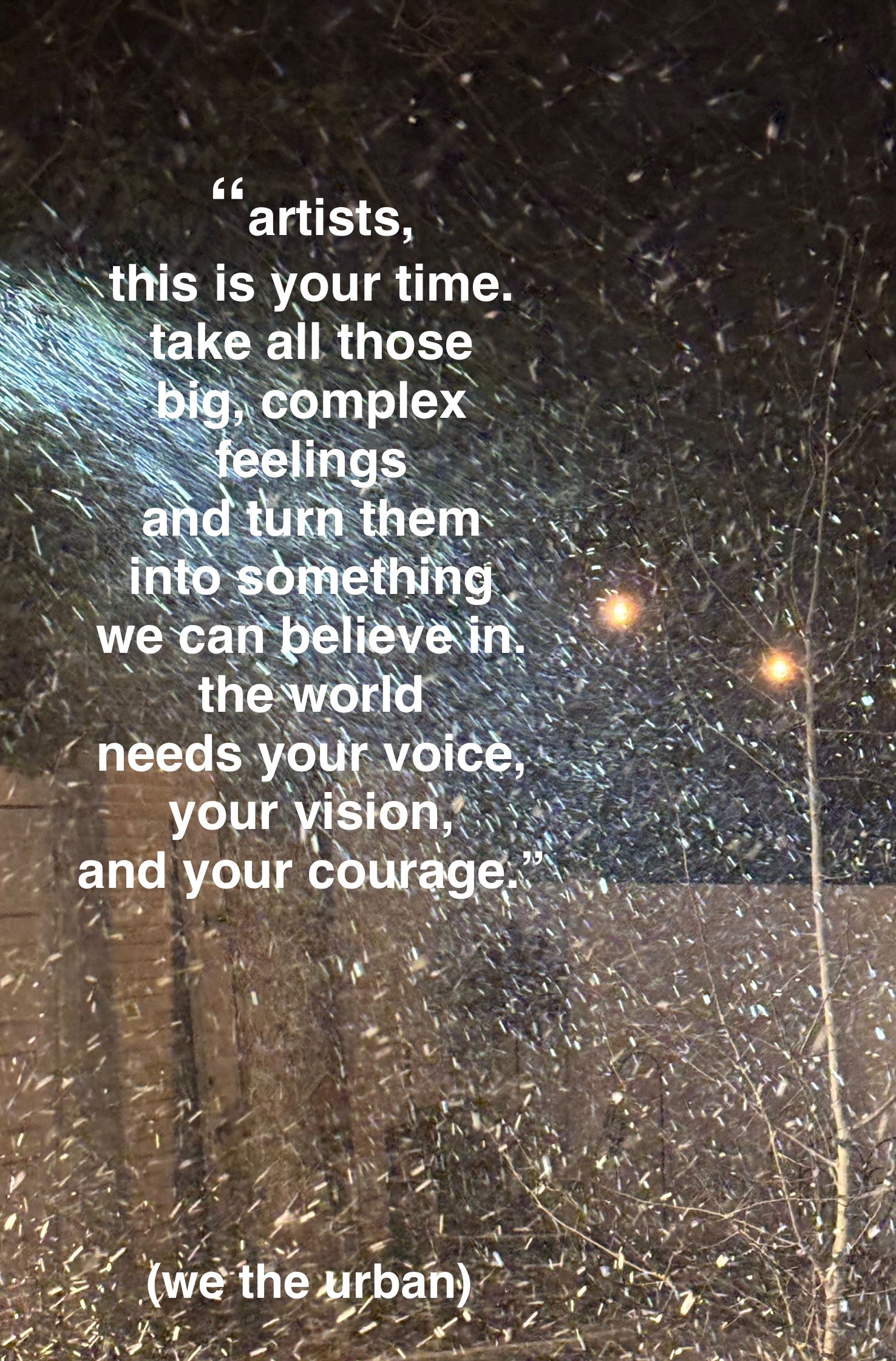 In our lifetime there has never been a greater need for the artist’s voice. We are daily served an avalanche of lies meant to keep us confused and off-center. Consider this: every person on the streets blowing a whistle or recording the brutality of ICE is an artist. They are calling our attention to the truth. They actively pierce the ugly rhetoric to expose the stark reality. They challenge the lies. They support us in knowing with absolute clarity who we are so that we might come together as a community and say to this administration, “You do not represent us. We are better than this.”