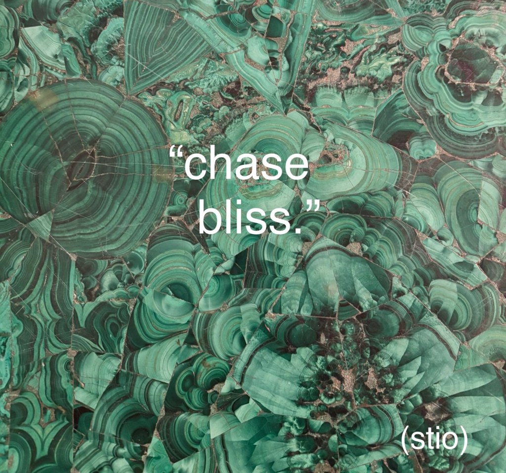 Delivering groceries to neighbors afraid to leave their homes, blowing a whistle to alert the community of masked invaders, gathering at the memorial of someone executed by a rogue state, singing songs of freedom together to remind the rogue state that freedom is not something they can take away, that we will meet their stare with an intensity that says, “Game on,” and remind them that, in our votes, in our pursuit of freedom-for-all, we hold the power to open or close the door. They do not. This, too, is to chase bliss. It opens us to something bigger.