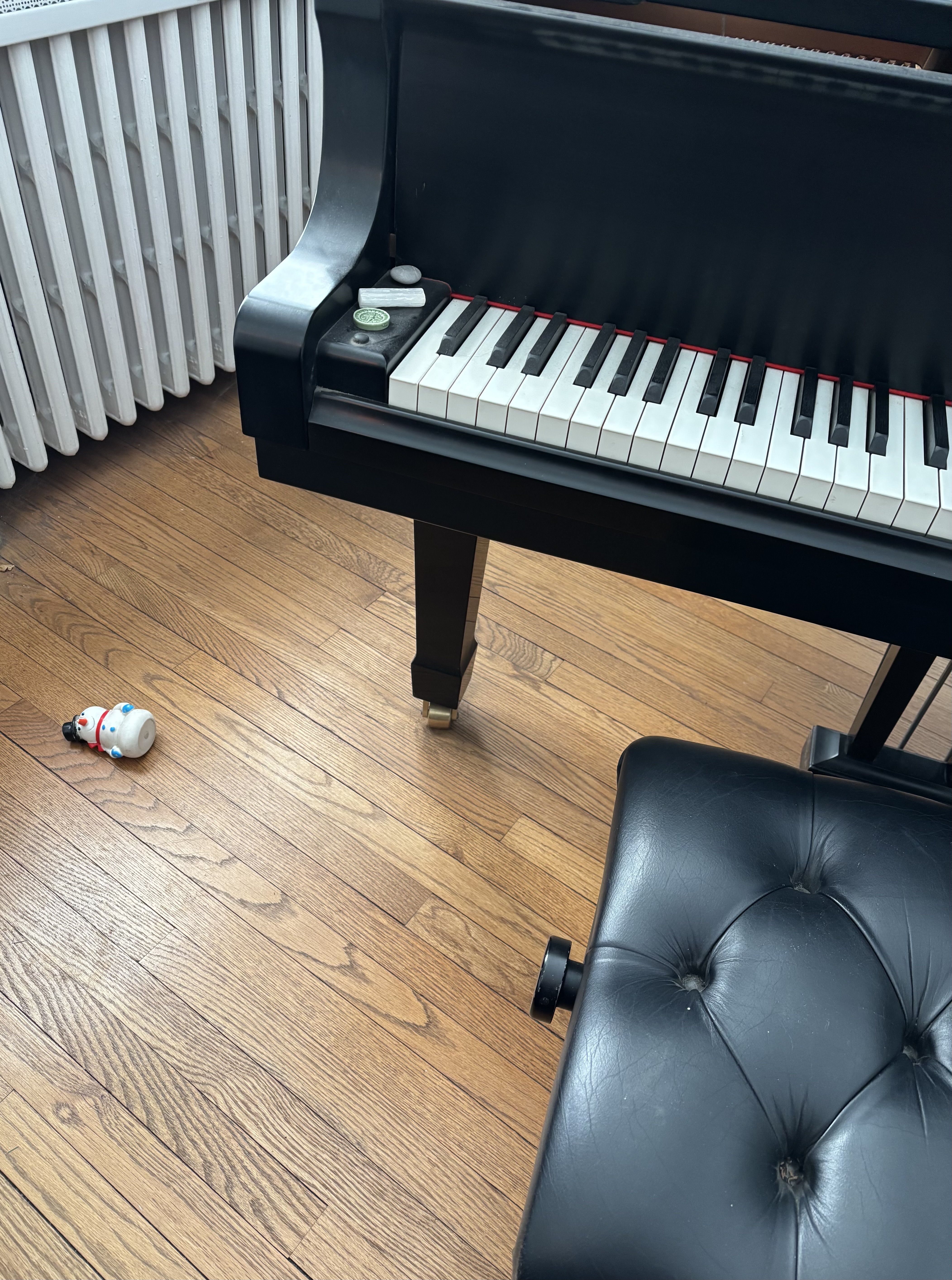 Yesterday she sat down to play. I heard the clackety-clack of Dogga’s nails on the wooden floor as he scooped up his snowman and headed for the studio. I stopped what I was doing and literally absorbed the profound beauty of the moment. A pure moment. Two sacred objects, piano and snowman, brought together by the love shared between two sacred beings.