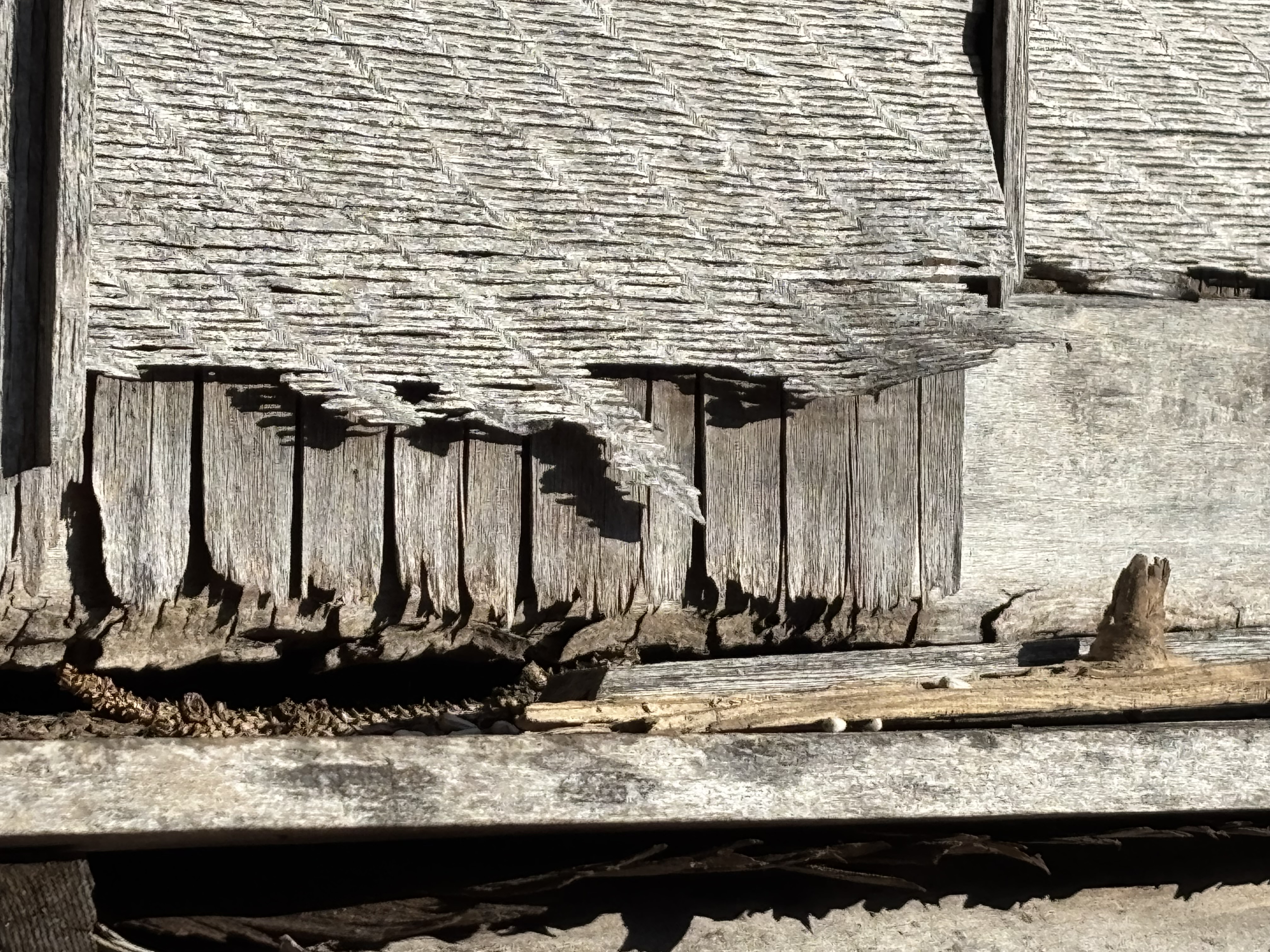 Barney-the-backyard-piano is disintegrating. His shiny facade has long since faded and now peels away, revealing the underlying layers. Those, too, are fragmenting. The textures of a lifetime exposed and made beautiful in contrast. The story of his making fully revealed in his unmaking.