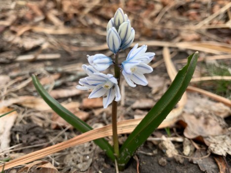 This year they surprised me. Lost in the daily crazy, the national nightmare, I simply forgot to look. In fact, I didn’t see them until the full striped squill chorus had arrived. There were so many that I couldn’t miss them. “Hello, old friends”.