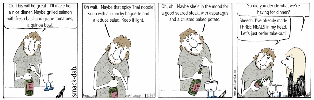 We delight in cooking together. I am the sous chef and Kerri the masterful Julia Child. We have favorite recipes which are supplanted by new favorites which help us rediscover the old favorites as if they were brand new. Like the hikers, when we plan our menu for the week be begin to dream of Wednesday’s dinner or “We can’t wait for Saturday!” Sometimes the anticipation is too much and we rearrange our plan to eliminate the delay in our gratification. We are not good at delayed gratification. It’s something we will have to work on if we actually attempt a thru-hike; we imagine a drone service bringing meals-on-demand to us on the trail. Or, perhaps, a chef hikes ahead of us with a mule train of supplies to make all that we yearn to eat.