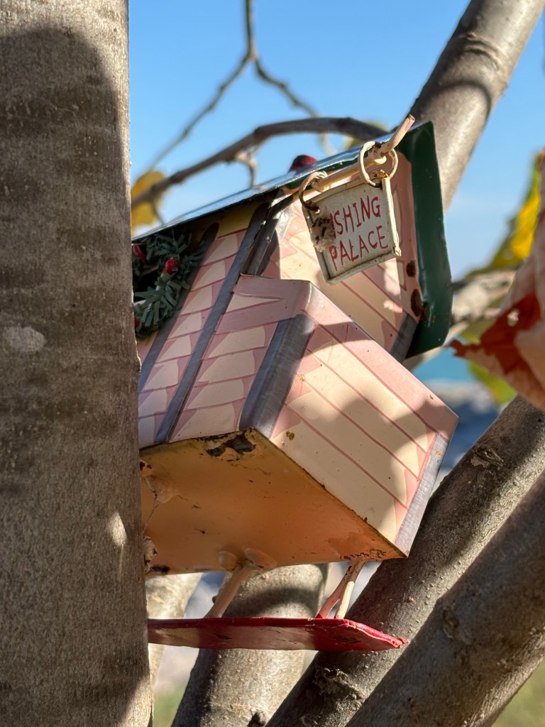 Evidently the elves had a bit too much nog and crashed the Wishing Palace into a tree. They must have been flying without a license since they seem to have crashed-and-run, leaving the Palace wedged into a tree with one runner missing. Will Santa be pissed? I’m not sure. Is jolly ole St. Nick capable of being cross? I imagine the sudden loss of The Wishing Palace during an drunken-elfen-joy-ride might raise his ire. In any event, I’d love to hear the whopper the elves tell Santa to explain the crash. Ho-Ho-Ho!