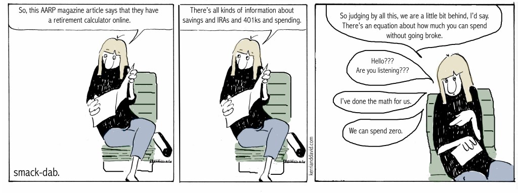 Filed under: Family, KS Friday, Possibility, smack-dab | Tagged: artistry, cartoon, cartoon strip, chicken marsala, children, cleaning house, cleaning out, creations, david robinson, davidrobinsoncreative.com, empty nest, ideas, Kerri Sherwood, kerri sherwood itunes, kerrianddavid.com, kerrisherwood.com, memories, oshkosh, proof, remembrance, seeds, smack-dab, story, studio melange, the melange | 1 Comment »