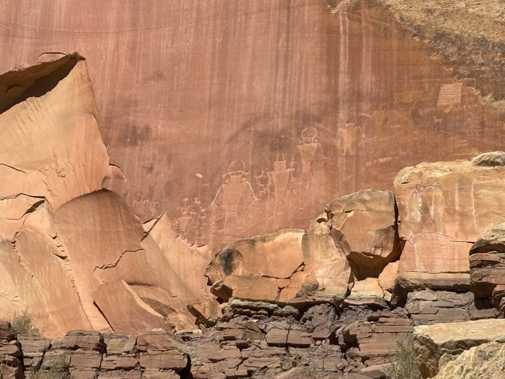 The Fremont River is named for an American explorer, John Charles Fremont, so the people who scratched pictures into the rock over 1,000 years ago also carry his name. As is the nature of history, we locate them from our point of view. We build an identity-structure and civilization-story about them based upon our story of them. We’ve placed them in our narrative timeline, 1 – 1300 CE. We have no idea how they thought of or marked their time.