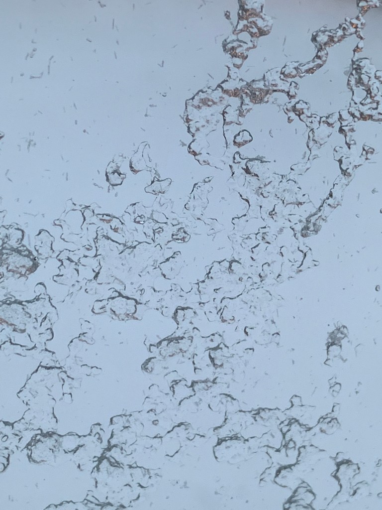Ice crystals formed on our kitchen window during the latest storm. Kerri rarely takes a single close-up. She takes many shots of the same subject. In a digital age, she is also able to pull a single photo into several different focuses and takes screenshots of the possibilities. A fluid focus. She composes. She questions. She asks. It’s a pure artist’s action. Turning to me she never asks, “Which is better?” Instead, knowing the power of a frame and with full respect for the difference that I might perceive, she asks, “Which do you like and why?”