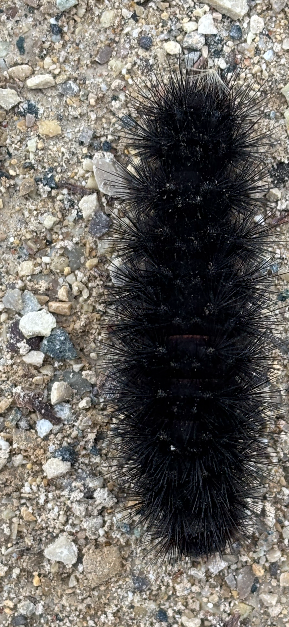 Of course, confessing my caterpillar ignorance compelled me to consult with the great oracle Google. I do not want to be a man of my times. As it turns out, as nature would have it, as is easily found with a simple-one-second search, Woolly Bear Caterpillars are abundant in the fall. They will someday transmogrify into Isabella Tiger Moths. And, as folklore would have it, farmer’s lore, the severity of the upcoming winter might be predicted based on the color of its bands. Fuzzy black indicates a harsh winter. Abundant brown bands indicate a milder winter. This fully black fuzzy caterpillar has me dusting off my snow shovel.