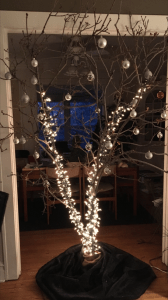 We cut a branch from the fallen tree and brought it in the house. It is now our Christmas tree.