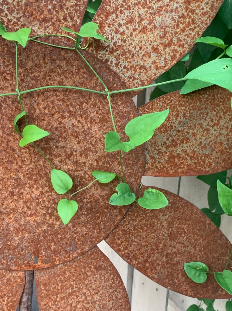 The passage is a neighborhood animal trail for the fox and opossum so we occasionally toss old broccoli or carrots gone rubbery for the critters to eat. Tossing critter snacks is the only time I ever visit the passageway. On a recent snack-toss-expedition I was astounded to see a mighty sunflower rising high above the weeds! A sunflower towering above the debris field. It felt auspicious. An affirmation. A positive sign of good things to come.